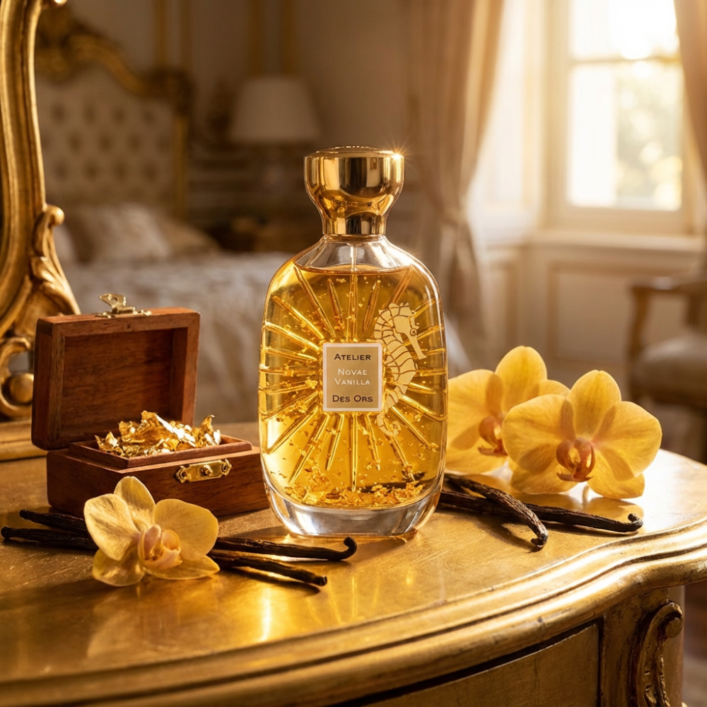 الأملاح المعدنية و الميموزا; قلب العطر الفانيليا, فانيليا بوربون و فانيليا مدغشقر; قاعدة العطر تتكون من خشب العنبر و المسك.